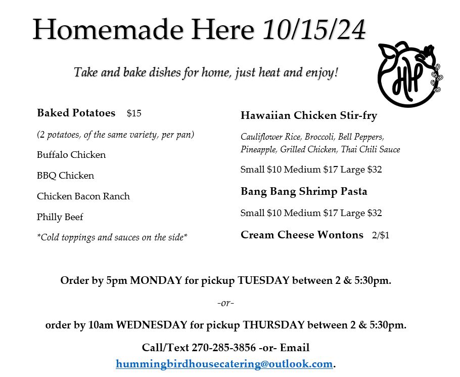 Back at it this week with a few dishes that need no accompaniments, ordering details listed on the menu below!