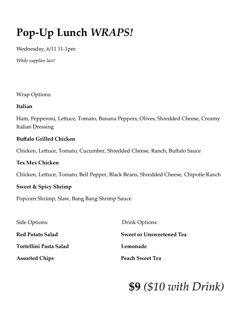 *Pop-Up Lunch* Posted byhummingbirdhousecateringJune 10, 2025Posted inUncategorized Lunch tomorrow! Come by and see us! Share this: Share on X (Opens in new window) X Share on Facebook (Opens in new window) Facebook Like Loading... Related Published by hummingbirdhousecatering Owner and operator of Hummingbird House Catering. View more posts