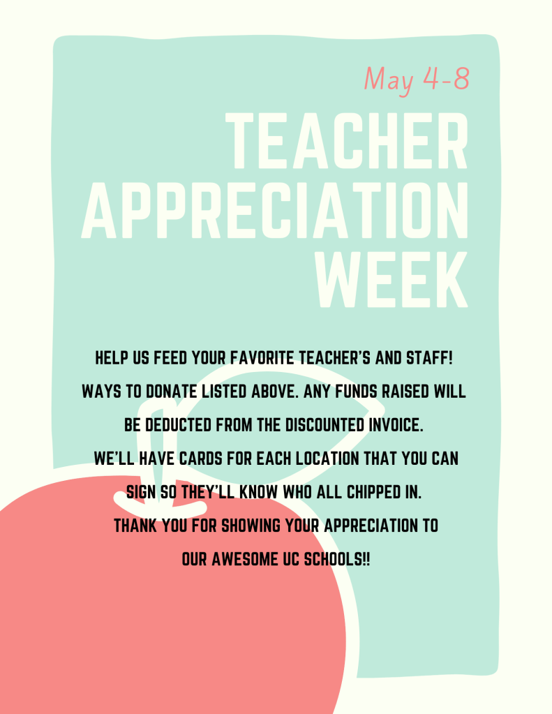 Last year, we were asked to deliver lunches to each UCPS campus during Teacher’s Appreciation week. And we’re excited to do the same this year 🤗